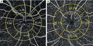 - Ghahari E, Bowd C, Zangwill LM, et al. Association of Macular and Circumpapillary Microvasculature with Visual Field Sensitivity in Advanced Glaucoma. Am J Ophthalmol 2019;204:51-61. [Crossref] [PubMed]